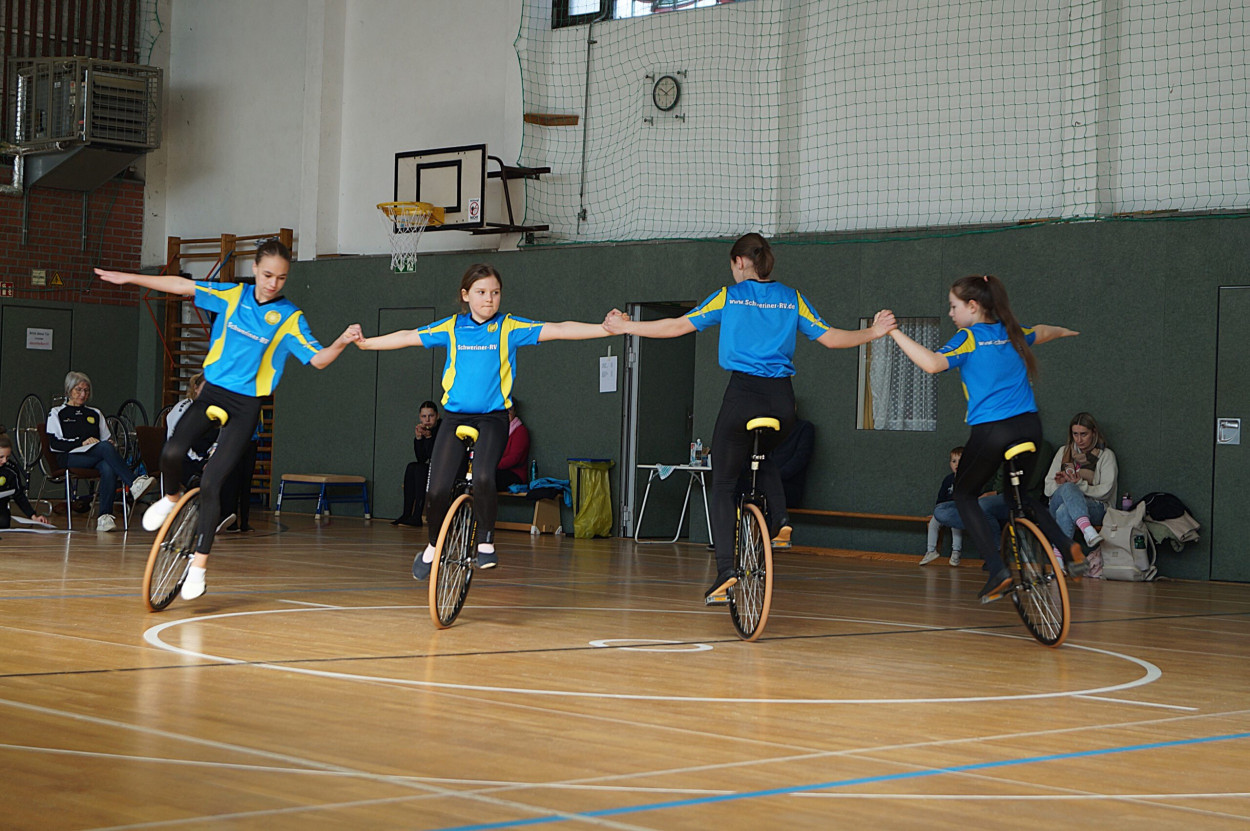 Unter Kunstradfahren kann man sich Akrobatik auf und mit dem Rad